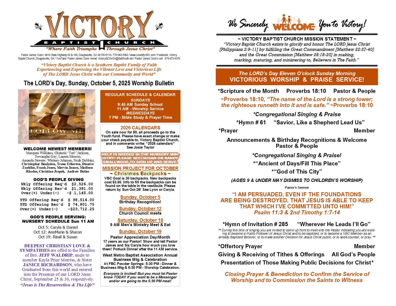 UPDATED for Sunday, The LORD'S Day, Oct 5, 2025