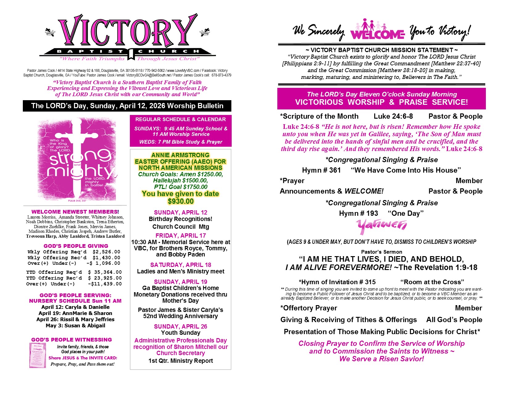 SUNDAYS: 9:45 AM - Sunday School Classes, & 11AM - Worship Service